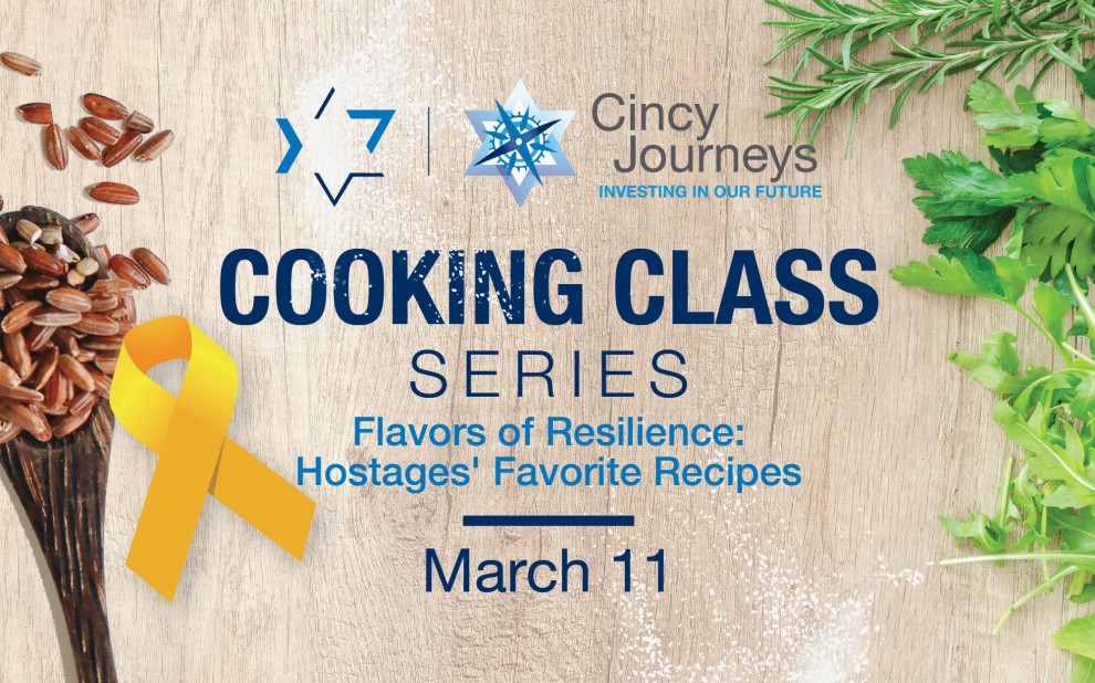 Join us on March 11 for the second in a special series of cooking classes with our Chaverim M’Israel (Friends from Israel). This class, in partnership with Cincy Journeys, is open to high school travel grantees and their families, by invitation only. A Kosher dinner will be served, and the class will cook special Israeli desserts. Free with registration; the location will be provided after registration. In addition, Cincy Journeys will provide each teen who attends with a $50 Visa gift card.