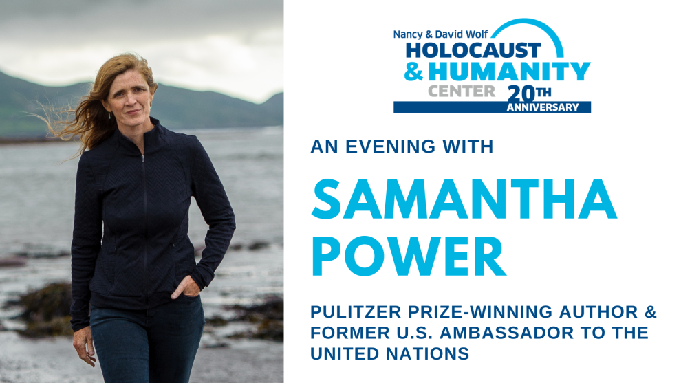 Join the Nancy & David Wolf Holocaust & Humanity Center for a virtual conversation with Samantha Power, Pulitzer Prize-winning author and former United States Ambassador to the United Nations. In this intimate and thought-provoking dialogue, Samantha Power will discuss her New York Times-bestselling memoir, The Education of an Idealist, and offer insight on a range of pressing global issues.