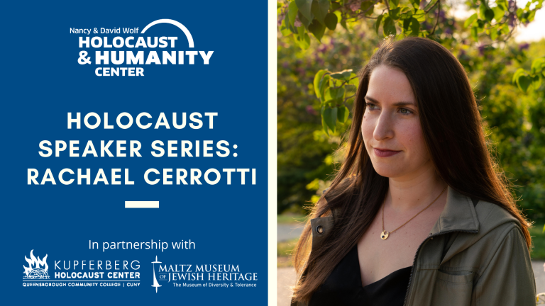 The Holocaust Speaker Series, held each Wednesday at 11:00 am, features Holocaust survivors and descendants of survivors sharing stories of life before, during, and after the Holocaust. Join us on Wednesday, July 7 at 11:00 am via Zoom with Rachael Cerrotti.