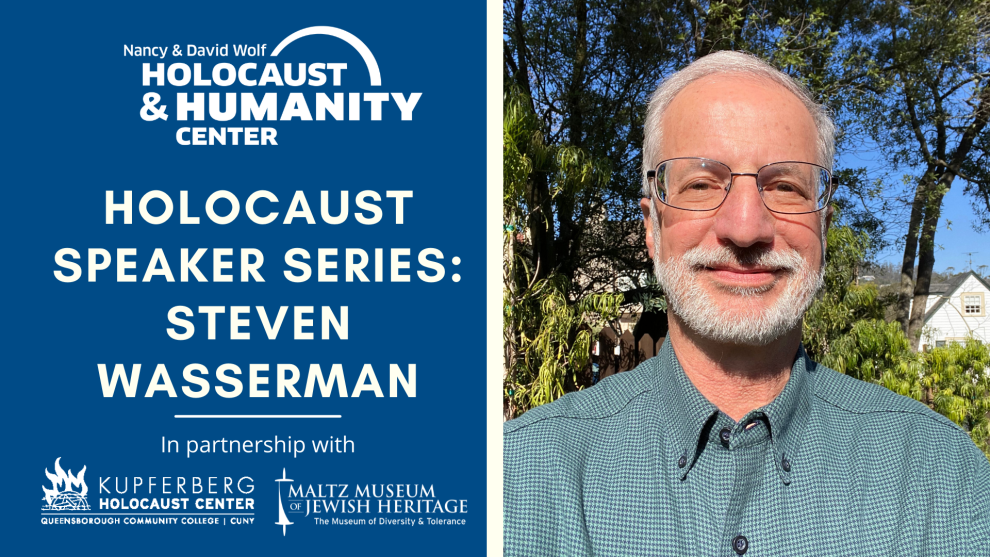 The Holocaust Speaker Series, held each Wednesday at 11:00 am, features Holocaust survivors and descendants of survivors sharing stories of life before, during, and after the Holocaust. Join us on Wednesday, March 16 at 11:00 am via Zoom with Steve Wasserman.