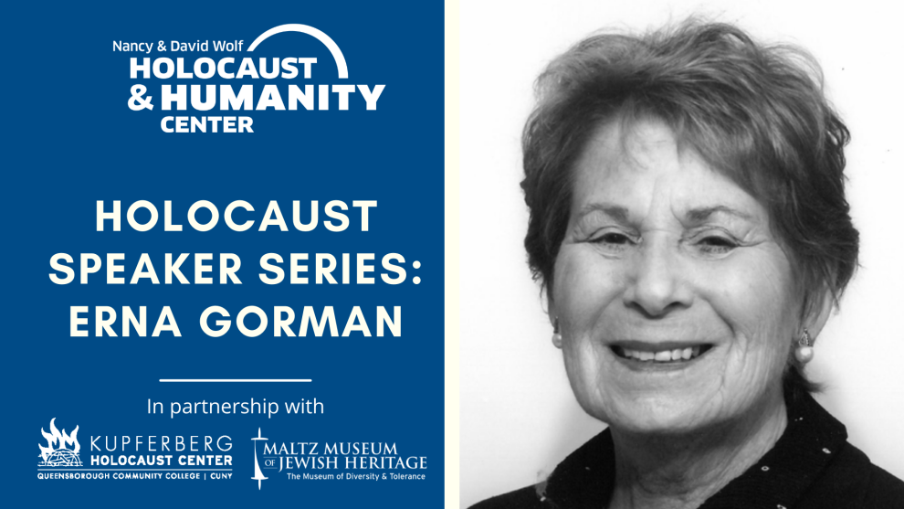 The Holocaust Speaker Series, held each Wednesday at 11:00 am, features Holocaust survivors and descendants of survivors sharing stories of life before, during, and after the Holocaust. Join us on Wednesday, March 23 at 11:00 am via Zoom with Erna Gorman.