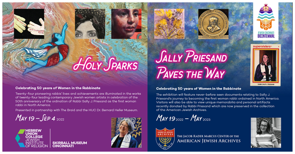 Sally Priesand Paves the Way ( May 19, 2022 - May, 2023 ) features never-before seen documents relating to Sally J. Priesand's journey to becoming the first woman rabbi ordained in North America. Visitors will also be able to view unique memorabilia and personal artifacts recently donated by Rabbi Priesand which are now preserved in the collection of the American Jewish Archives.