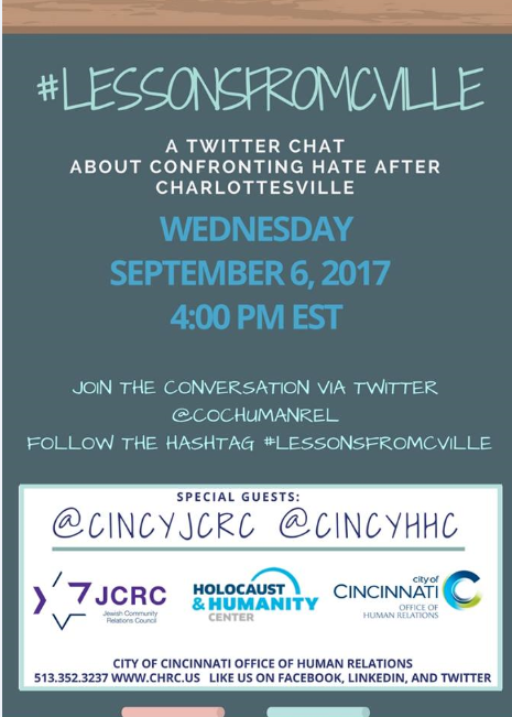 The Jewish Community Relations Council, in partnership with the City of Cincinnati's Office of Human Relations (OHR) and the Holocaust and Humanity Center are hosting the latest edition of OHR's Twitter Townhall, an online discussion series about current events.