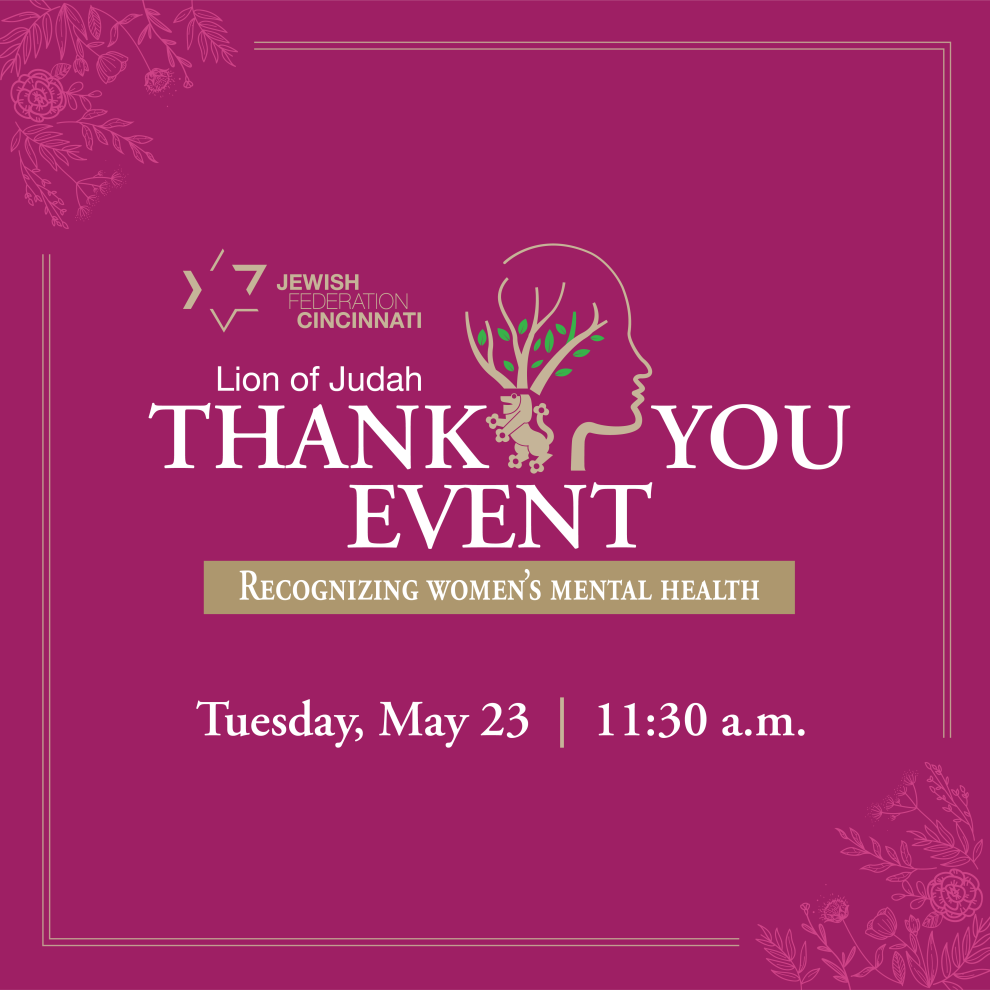 Please join us for our Lion of Judah Annual Thank You Event. We are so excited to come together in person for a luncheon, service project, and reflection on the incredible impact you've made this past year. We will be recognizing women's mental health with our Keynote Speaker Carolyn Gitlin, JFNA National Women's Philanthropy Chair.