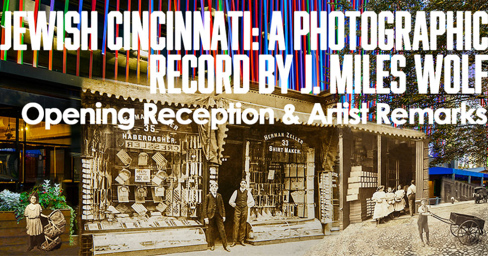 Fifteen new images join the original 18 from the 2018 show, and the installation carries a new narrative addressing the contributions of Jewish Cincinnatians in the spheres of business, civic life, social welfare, faith, the arts, healthcare, philanthropy, and popular culture. Wolf expands his reach to Northern Kentucky and the West Side, where several congregations thrived during the 19th and early 20th centuries. Social clubs, sports venues, and the nation’s first Jewish hospital are also documented in Wolf’s signature photographs that combine historical images, carefully culled from local archives, with city views that capture the here and now of these locales. Self-guided smartphone tours and reproductions of Wolf’s work at selected downtown venues for a limited time expand the exhibition beyond the walls of the Skirball Museum