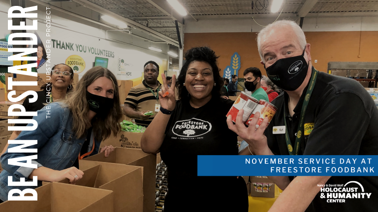 Join the Nancy & David Wolf Holocaust & Humanity Center for its first-ever Upstander Service Day. HHC will be leading a group volunteer activity at Freestore Foodbank’s Mayerson Distribution Center on November 18, from 5 p.m. to 7:30 p.m. After learning about what it means to be an upstander and why HHC features the Freestore Foodbank in its Humanity Gallery, volunteers will help pack and organize food products for those in need. Freestore Foodbank’s mission is to improve lives by eliminating hunger in partnership with our community, and our vision is to create a hunger-free, healthy, and thriving community.