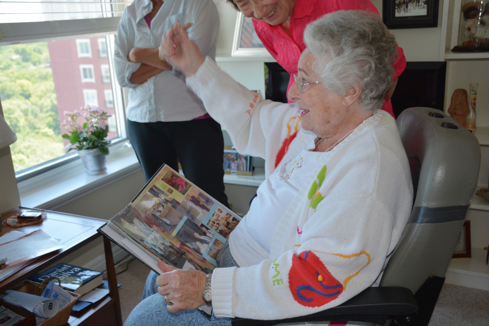 Ms. Marks is a vibrant, engaging personality at 90. She greets visitors in slightly accented English, seated in a power wheelchair, gently mocking her lack of hostessing ability since she cannot reach the plates for lunch. Her new apartment is not yet configured to be accessible for her.