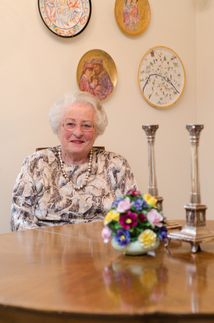 However, now Ms. Marks has pressing needs. Her two children live out of town. The Jewish Family Service Center for Holocaust Survivors has linked her to medical services, physical therapy, and additional help for her and her family. Ms. Marks says, grinning, about her care manager, “[Gail Ziegler] packed me up and got me to Cedar Village. And she knew names of doctors and she encouraged me to do physical therapy.”